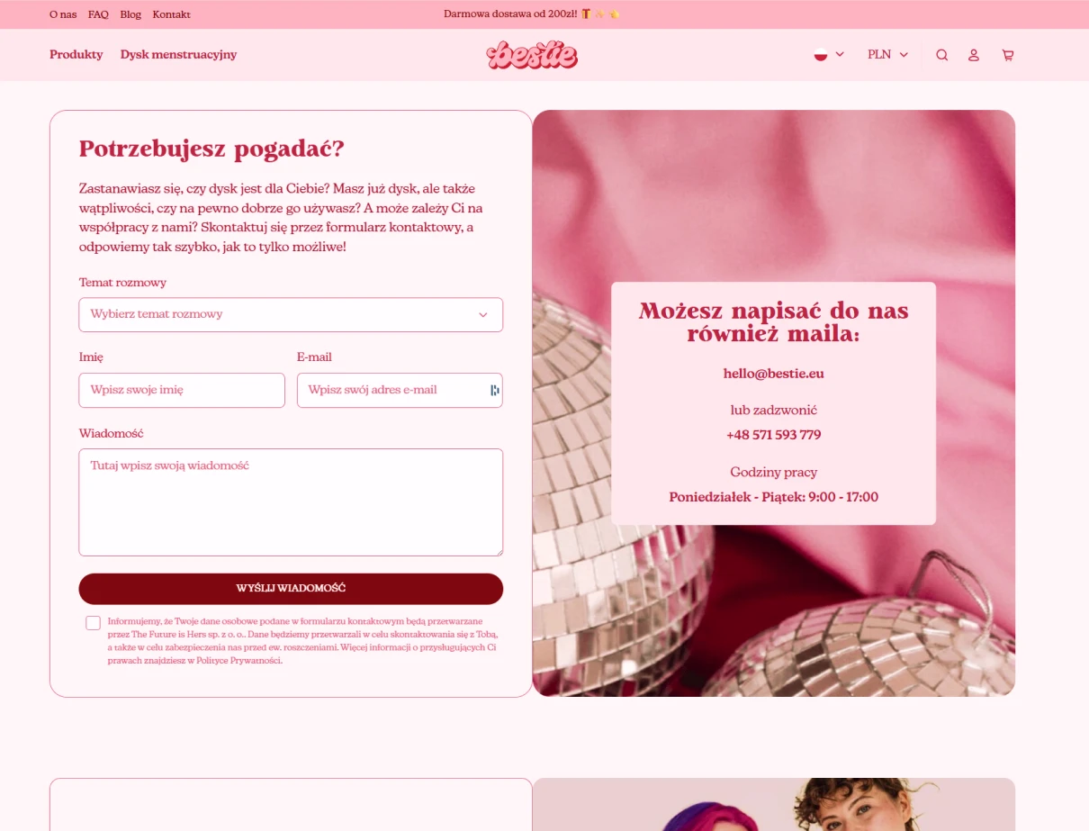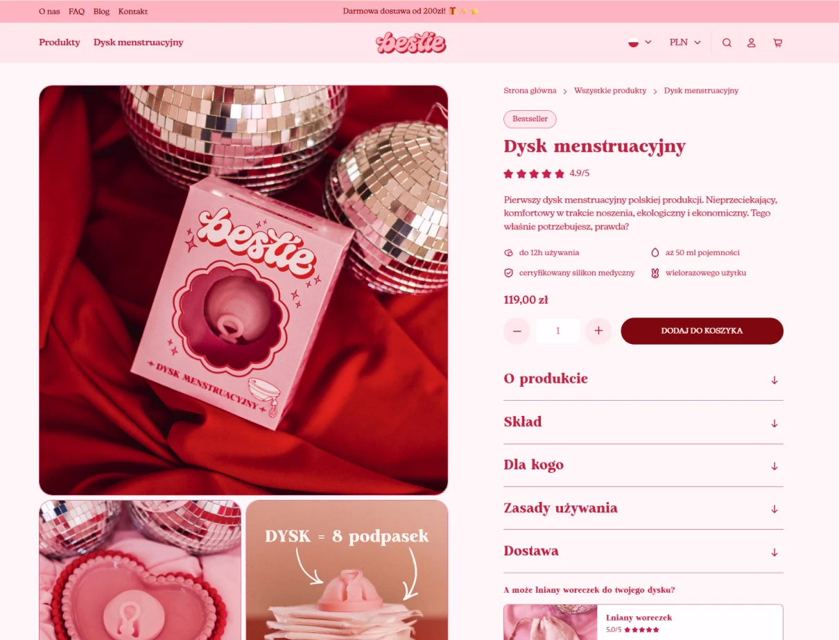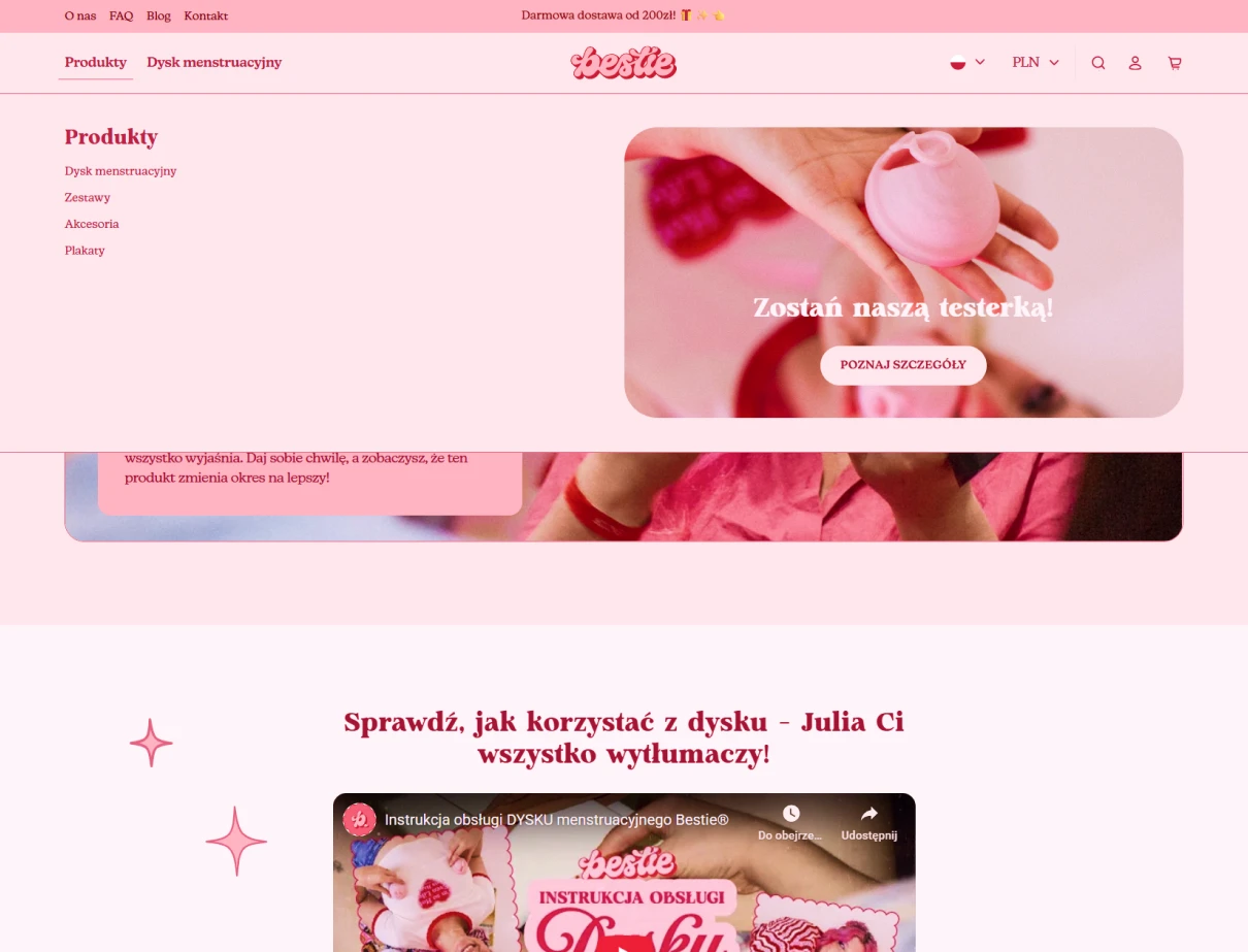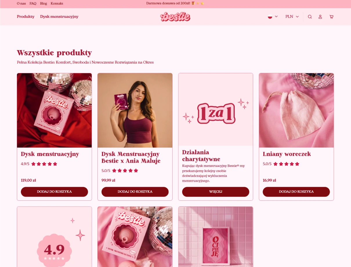 Bestie to marka produktów menstruacyjnych stworzona przez Julię i Martynę. Dziewczyny potrzebowały zmienić dotychczasowy model prowadzenia swojego sklepu internetowego. Zdecydowały się na migrację z WooCommerce, na Shopify, który okazał się dla nich wspaniałym rozwiązaniem. Pozwalającym na skalowanie rozpoznawalności marki poza granicami Polski. Zdecydowaliśmy się na stworzenie spersonalizowanego szablonu i projektu sklepu, specjalnie dla Bestie.